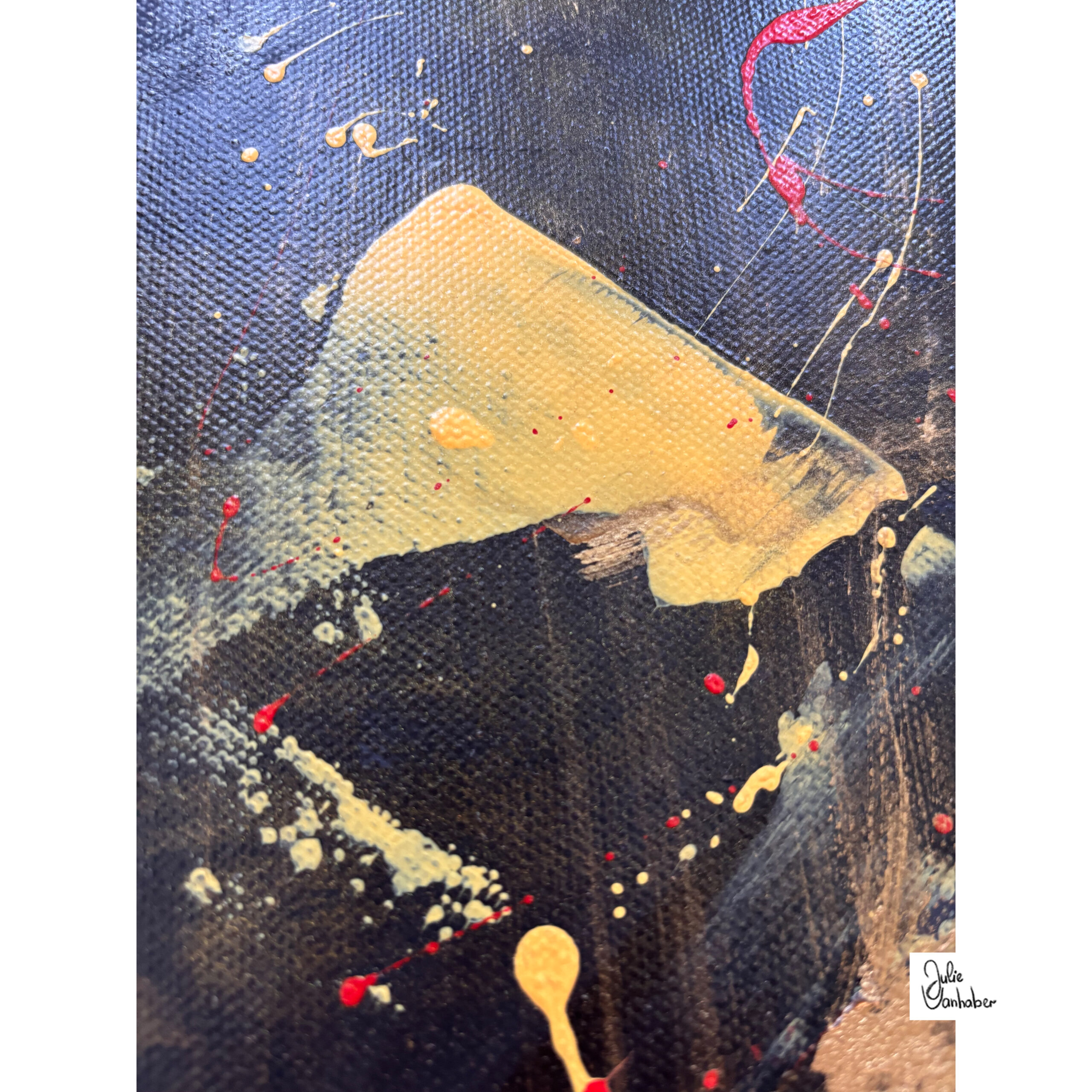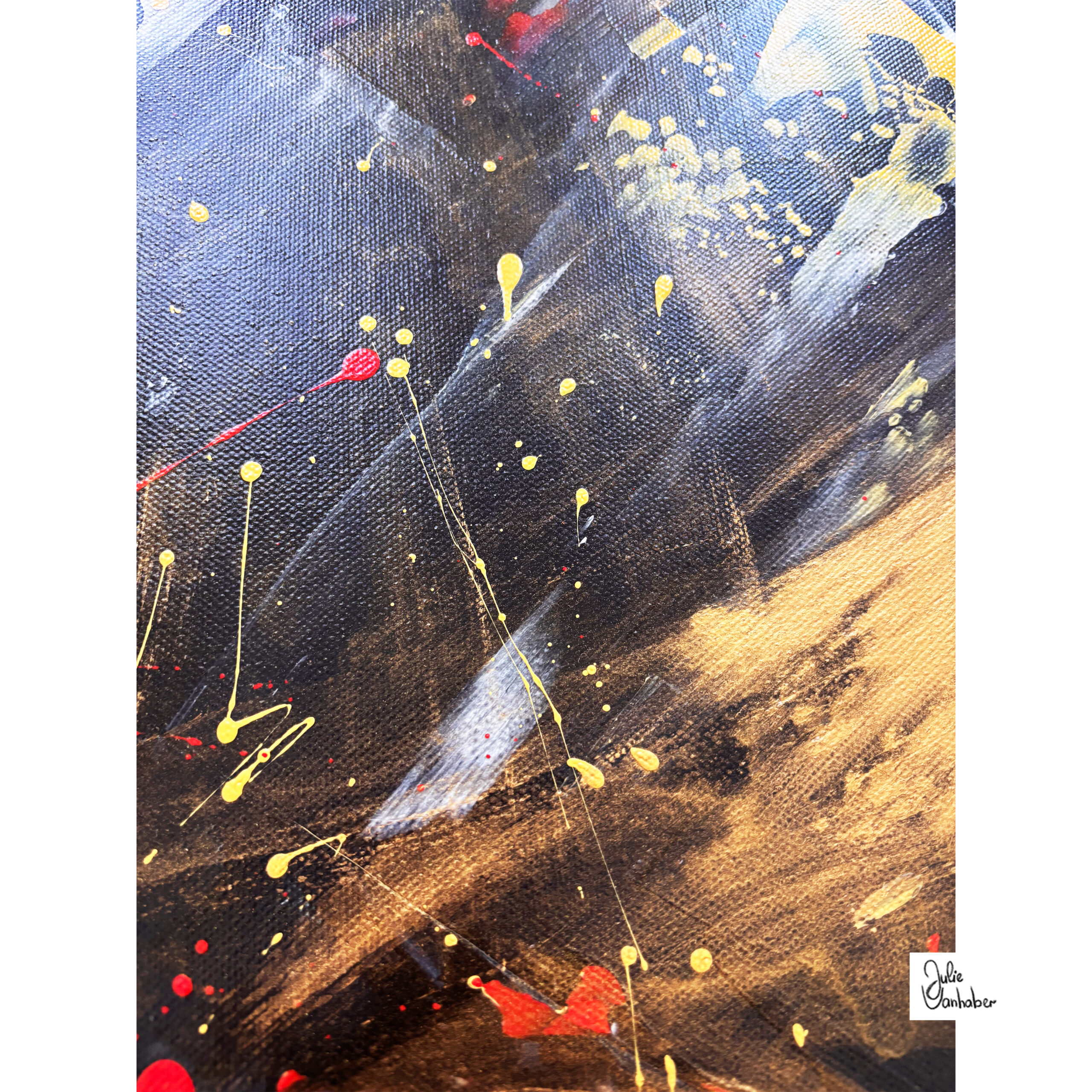 Abstraktní obraz, který zobrazuje sílu vyhaslé sopky. Zlaté a rudé odstíny symbolizují dávnou energii, zatímco temné pozadí evokuje hlubokou paměť země. Tento obraz vás zve k vnitřnímu ztišení a propojení s přírodní silou.