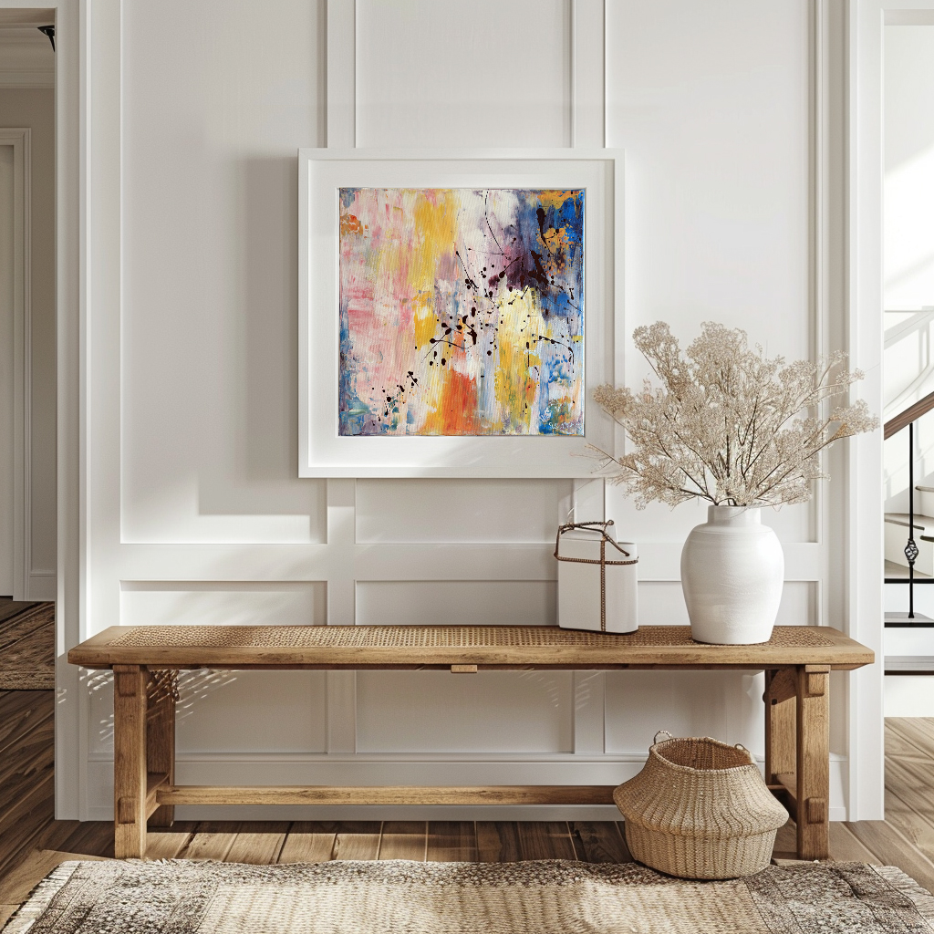 Objevte magii barev s novou akrylovou abstraktní malbou! Tento jedinečný kousek, je pravým odrazem emocí a tvůrčího vyjádření. Každý tah štětce a každá barva vypráví svůj příběh, přinášející do vašeho prostoru živost a inspiraci.